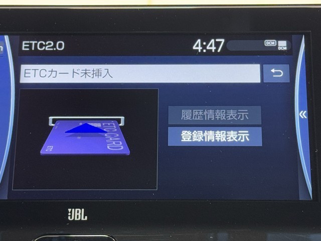 ナビ画面に連動したETCを装備しています。 過去に利用した利用料金も一目で分かって、とっても便利です。 ETCの抜き忘れ、挿し忘れも警告してくれるので安心ですね。
