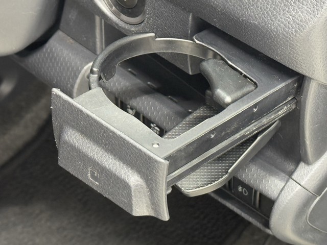 便利なカップホルダーを装備しています。 缶ジュースを開けて運転していると振動で倒れないかヒヤヒヤ、意外と置き場に困るもの。 意外に重要な装備ですね。