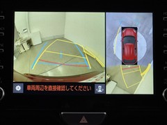 パノラミックビューモニターシステムが付いているので車の上から見た映像が確認できますよ。 一目で車両周辺の情報を確認できますが、直接安全をご確認下さい。