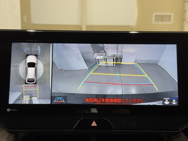 パノラミックビューモニターシステムが付いているので車の上から見た映像が確認できますよ。 一目で車両周辺の情報を確認できますが、直接安全をご確認下さい。