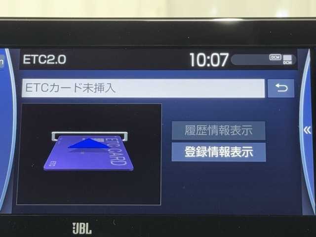 ナビ画面に連動したETCを装備しています。 過去に利用した利用料金も一目で分かって、とっても便利です。 ETCの抜き忘れ、挿し忘れも警告してくれるので安心ですね。