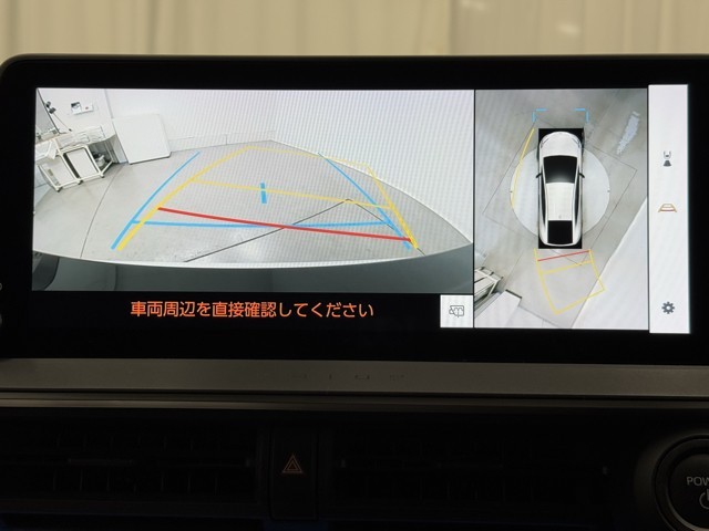パノラミックビューモニターシステムが付いているので車の上から見た映像が確認できますよ。 一目で車両周辺の情報を確認できますが、直接安全をご確認下さい。
