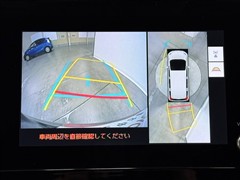 パノラミックビューモニターシステムが付いているので車の上から見た映像が確認できますよ。 一目で車両周辺の情報を確認できますが、直接安全をご確認下さい。