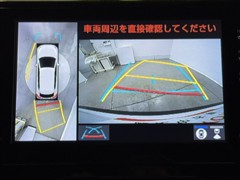 パノラミックビューモニターシステムが付いているので車の上から見た映像が確認できますよ。 一目で車両周辺の情報を確認できますが、直接安全をご確認下さい。