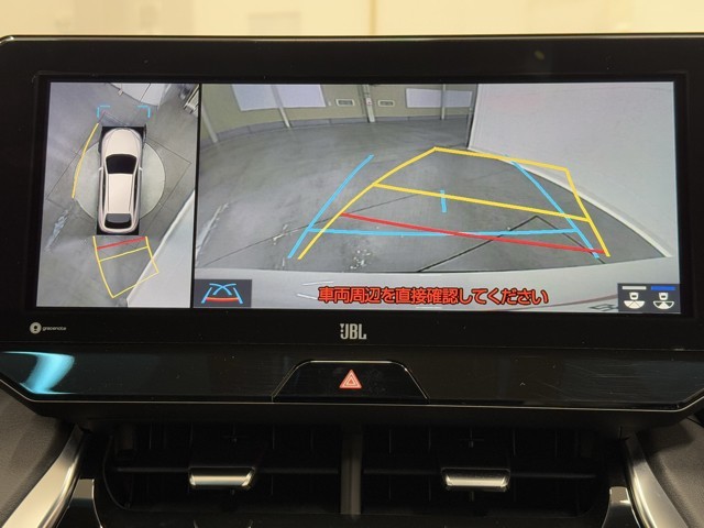 パノラミックビューモニターシステムが付いているので車の上から見た映像が確認できますよ。 一目で車両周辺の情報を確認できますが、直接安全をご確認下さい。