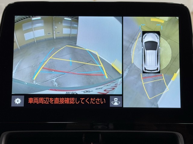 パノラミックビューモニターシステムが付いているので車の上から見た映像が確認できますよ。 一目で車両周辺の情報を確認できますが、直接安全をご確認下さい。