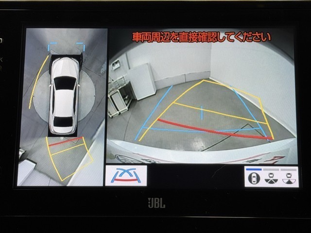 パノラミックビューモニターシステムが付いているので車の上から見た映像が確認できますよ。 一目で車両周辺の情報を確認できますが、直接安全をご確認下さい。