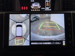 パノラミックビューモニターシステムが付いているので車の上から見た映像が確認できますよ。 一目で車両周辺の情報を確認できますが、直接安全をご確認下さい。