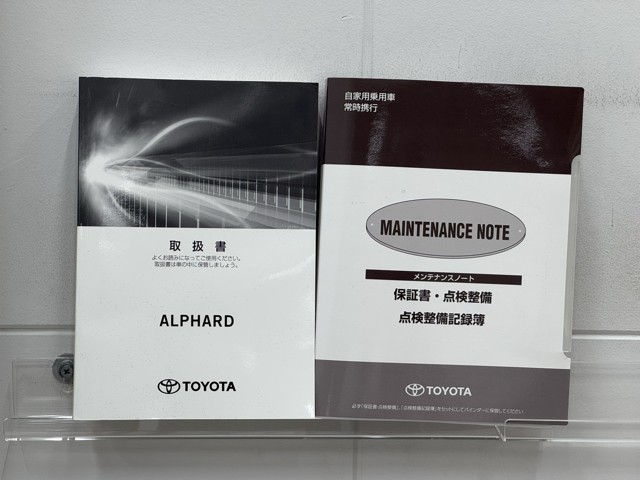メンテナンスノート、取扱説明書です。 その車の整備記録が事細やかに記録されています。 車が生まれてから今までどのような道を歩んできたのか判るとても重要な物ですよ。