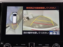 パノラミックビューモニターシステムが付いているので車の上から見た映像が確認できますよ。 一目で車両周辺の情報を確認できますが、直接安全をご確認下さい。