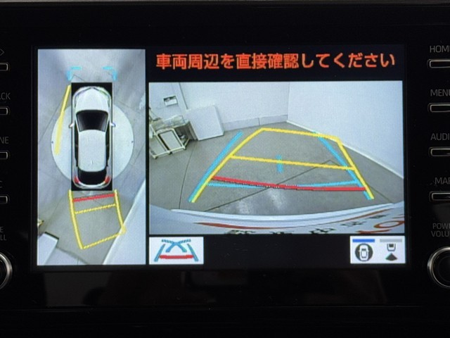 パノラミックビューモニターシステムが付いているので車の上から見た映像が確認できますよ。 一目で車両周辺の情報を確認できますが、直接安全をご確認下さい。