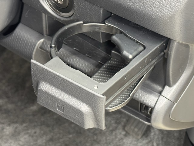 カップホルダーです。 長い間乗っていると沢山置く場所が欲しくなりますよね。 缶ジュースを開けて運転していると振動で倒れないかヒヤヒヤしちゃいますよね。 意外に無いと困る装備ですよね。