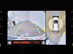 パノラミックビューモニターシステムが付いているので車の上から見た映像が確認できますよ。 一目で車両周辺の情報を確認できますが、直接安全をご確認下さい。