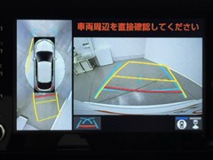 パノラミックビューモニターシステムが付いているので車の上から見た映像が確認できますよ。 一目で車両周辺の情報を確認できますが、直接安全をご確認下さい。