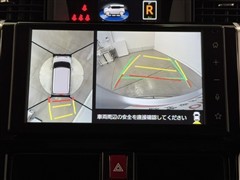 パノラミックビューモニターシステムが付いているので車の上から見た映像が確認できますよ。 一目で車両周辺の情報を確認できますが、直接安全をご確認下さい。