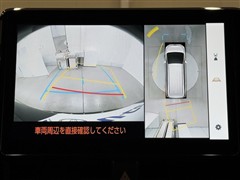 パノラミックビューモニターシステムが付いているので車の上から見た映像が確認できますよ。 一目で車両周辺の情報を確認できますが、直接安全をご確認下さい。