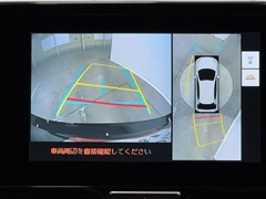 パノラミックビューモニターシステムが付いているので車の上から見た映像が確認できますよ。 一目で車両周辺の情報を確認できますが、直接安全をご確認下さい。