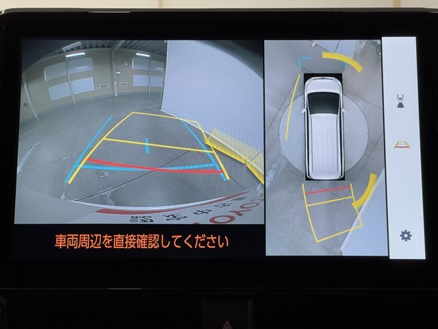 パノラミックビューモニターシステムが付いているので車の上から見た映像が確認できますよ。 一目で車両周辺の情報を確認できますが、直接安全をご確認下さい。