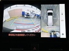 パノラミックビューモニターシステムが付いているので車の上から見た映像が確認できますよ。 一目で車両周辺の情報を確認できますが、直接安全をご確認下さい。
