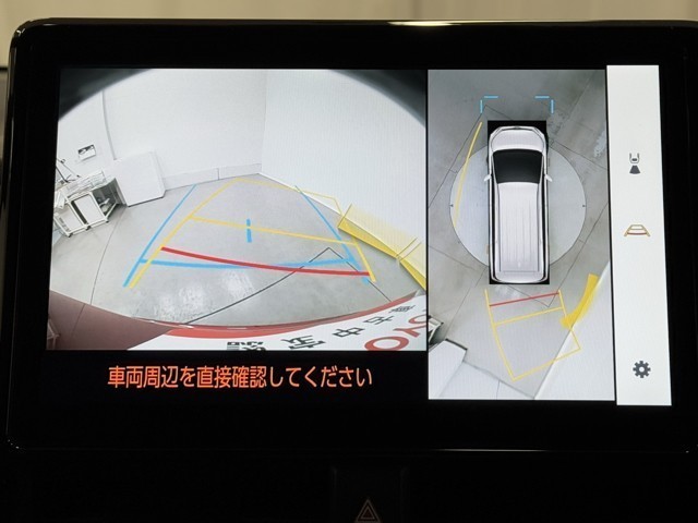 パノラミックビューモニターシステムが付いているので車の上から見た映像が確認できますよ。 一目で車両周辺の情報を確認できますが、直接安全をご確認下さい。