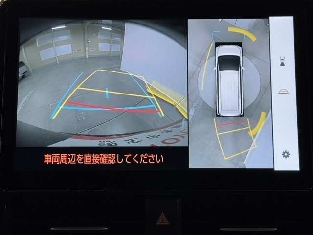 パノラミックビューモニターシステムが付いているので車の上から見た映像が確認できますよ。 一目で車両周辺の情報を確認できますが、直接安全をご確認下さい。