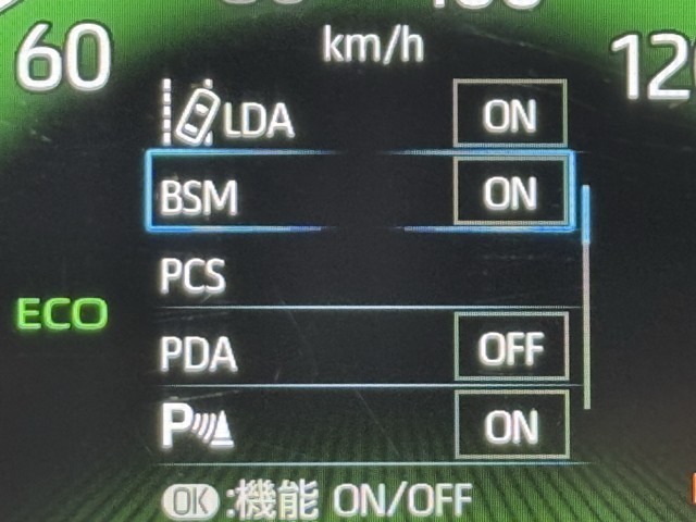 車線変更時などに、ドアミラーでは確認しにくい後側方エリア(ブラインドスポット)に存在する車両をレーダーで検知。警告サインをドアミラー等に表示することで、運転者に注意喚起する機能。