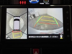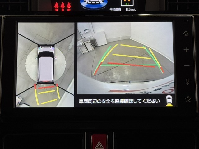 パノラミックビューモニターシステムが付いているので車の上から見た映像が確認できますよ。 一目で車両周辺の情報を確認できますが、直接安全をご確認下さい。