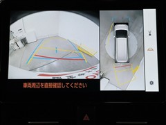 パノラミックビューモニターシステムが付いているので車の上から見た映像が確認できますよ。 一目で車両周辺の情報を確認できますが、直接安全をご確認下さい。