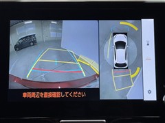 パノラミックビューモニターシステムが付いているので車の上から見た映像が確認できますよ。 一目で車両周辺の情報を確認できますが、直接安全をご確認下さい。