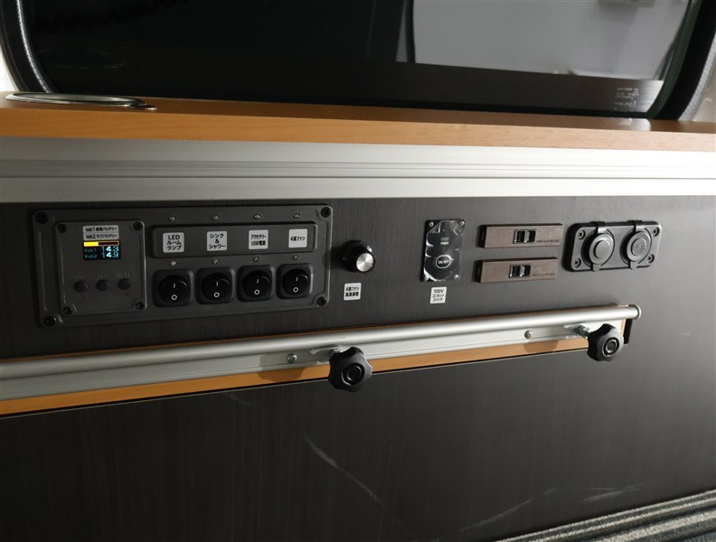 基本電源ユニット:走行中にサブバッテリーへ充電しエンジン停止後も「DC12V」「AC100V]の電源供給が可能です。