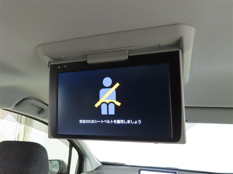 後席モニター装備:セカンドシート・サードシートにご乗車の方は、ドライブ中も天井部についているモニターでTV等をお楽しみ下さい♪♪使用しない時は、画面を天井部分に格納できます!
