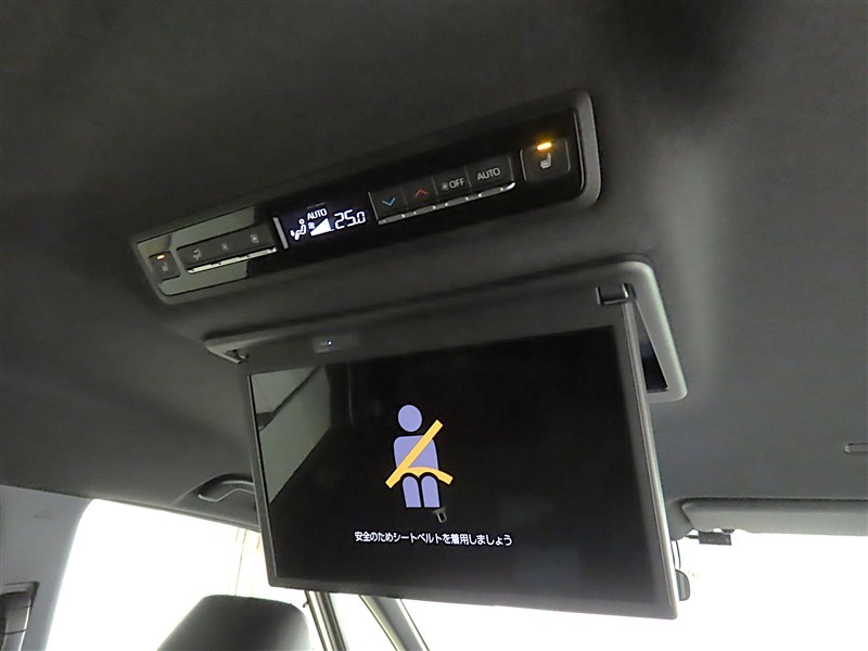 後席モニター装備:セカンドシート・サードシートにご乗車の方は、ドライブ中も天井部についているモニターでTV等をお楽しみ下さい♪♪使用しない時は、画面を天井部分に格納できます!