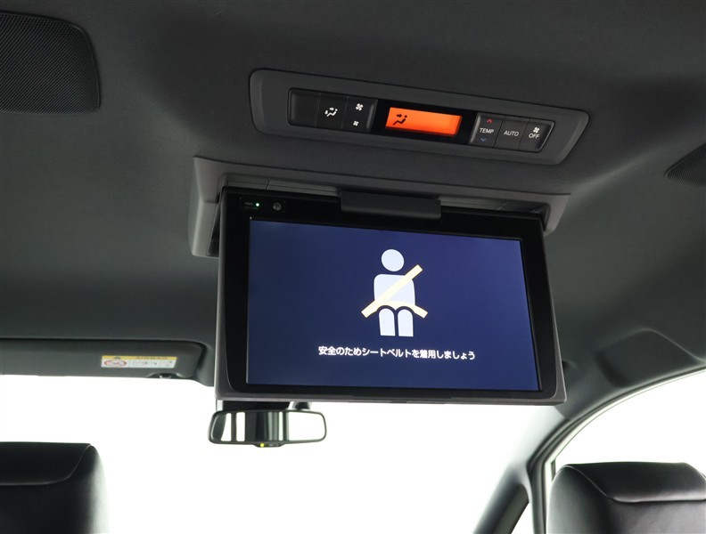 後席モニター装備:セカンドシート・サードシートにご乗車の方は、ドライブ中も天井部についているモニターでTV・DVD等をお楽しみ下さい♪♪使用しない時は、画面を天井部分に格納できます!