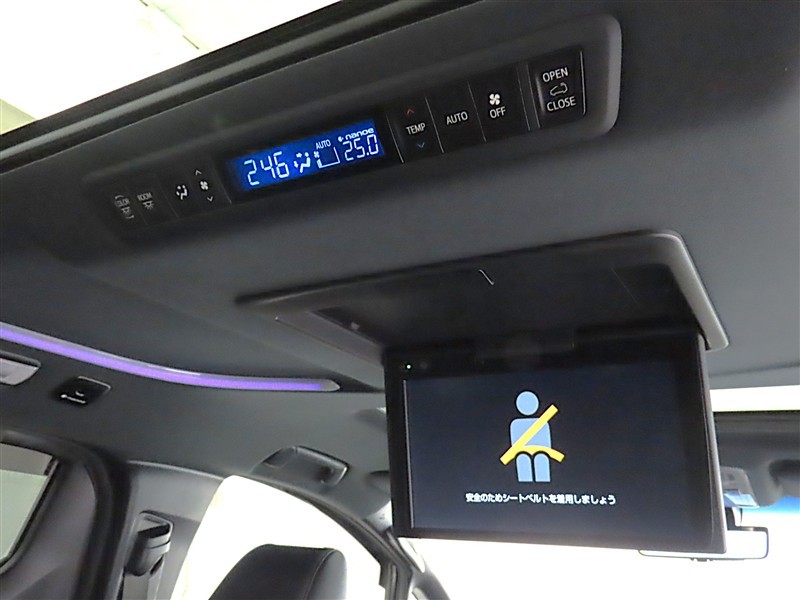 後席モニター装備:セカンドシート・サードシートにご乗車の方は、ドライブ中も天井部についているモニターでTV等をお楽しみ下さい♪♪使用しない時は、画面を天井部分に格納できます!