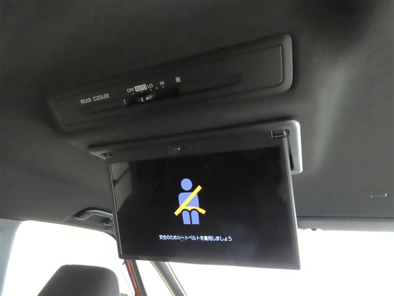 後席モニター装備:セカンドシート・サードシートにご乗車の方は、ドライブ中も天井部についているモニターでTV等をお楽しみ下さい♪♪使用しない時は、画面を天井部分に格納できます!