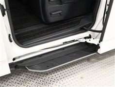 ユニバーサルステップは、スライドドアをオープンすると同時に、自動でステップが出現。お子様や高齢者の方も楽に乗り降りできます。