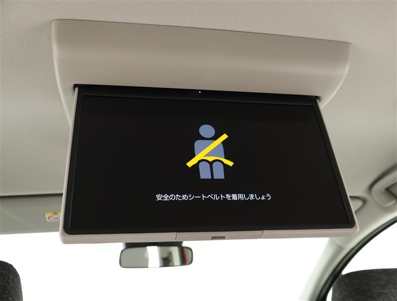 後席モニター装備:セカンドシート・サードシートにご乗車の方は、ドライブ中も天井部についているモニターでTV・DVD等をお楽しみ下さい♪♪使用しない時は、画面を天井部分に格納できます!