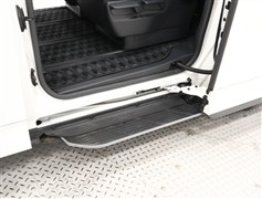 ユニバーサルステップ:スライドドアの開閉と連動してドア下からせり出す補助ステップです。子供や高齢者もスムーズに乗り降りできる画期的な「からくり」機構です。