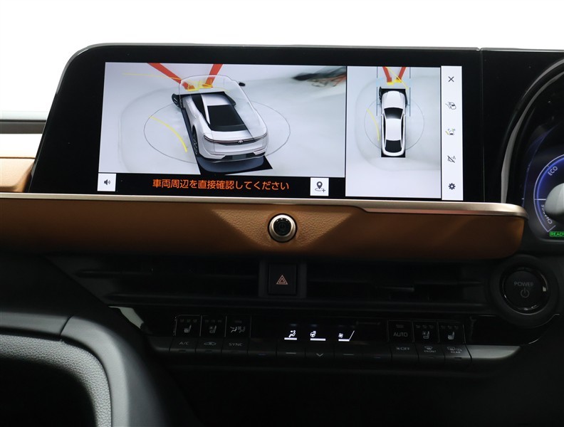 パノラミックビューモニター装備!サイドクリアランスビュー/コーナリングビュー・車両に取り付けたフロント、サイド、バックカメラの映像を合成して画面上に表示させ、車両をうしろ上空から見たような映像を表示。