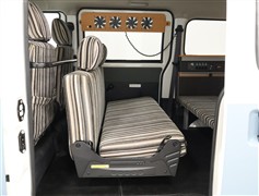 2連天井LED照明:天井のセンター部には、夜間に車内で過ごす際に重宝する大型LEDランプを装備。
