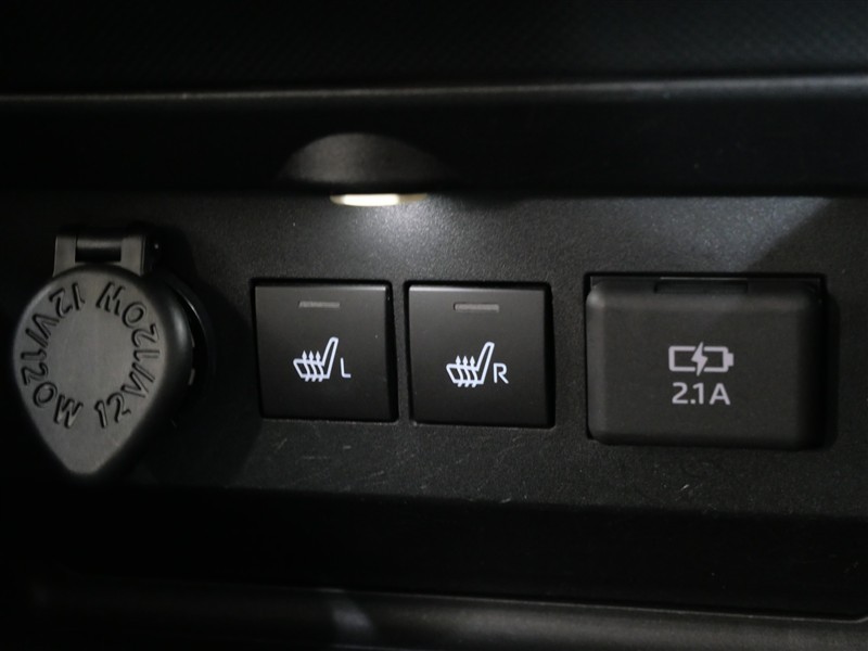 フロントシートヒータースイッチ、電源コンセント、USB給電ポート