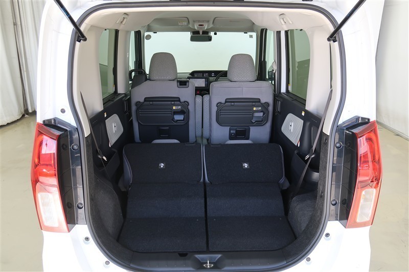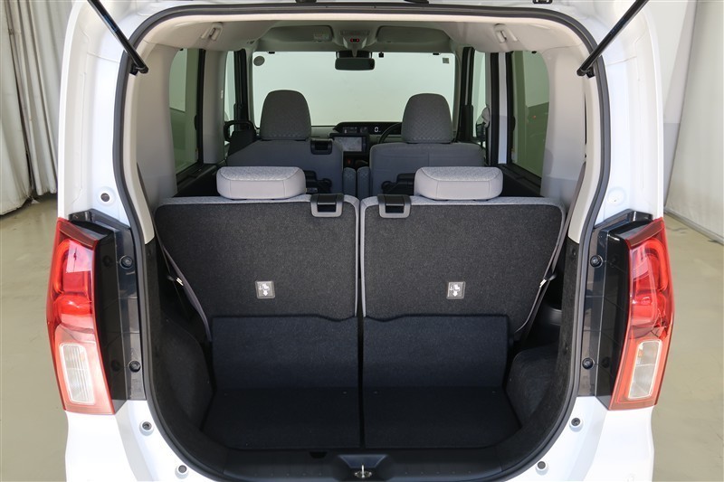【トランクルーム】後部座席は可倒式です。荷室は趣味やお仕事に利用の幅は広がります。子育てママにはベビーカー、大きな買い物エコバックも入って便利です♪