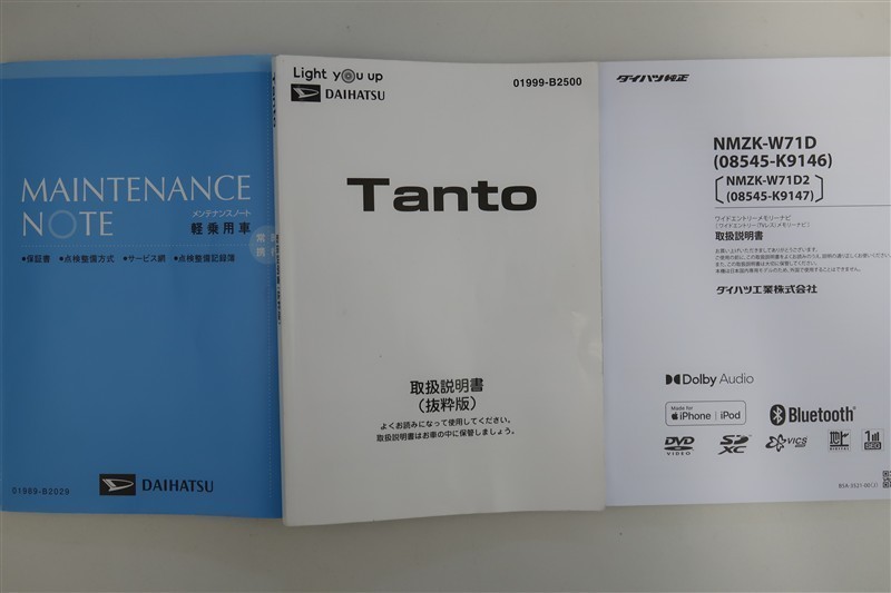 【取扱説明書】 車両・ナビ共に有ります!メンテナンスブックが着いているのも安心感が増します。購入後、操作に関してご不明な点がございましたら、スタッフにお気軽にお問い合わせください。
