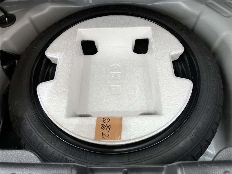 近年、パンク修理キット装着車が増えておりますが、タイヤ側面の損傷やタイヤがホイールから外れた場合はやっぱり「応急タイヤ」が安心です。もちろん、トランクフロアも応急タイヤを外してクリーニング済みです♪