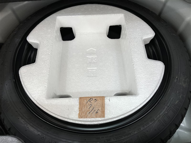 近年、パンク修理キット装着車が増えておりますが、タイヤ側面の損傷やタイヤがホイールから外れた場合はやっぱり「応急タイヤ」が安心です。もちろん、トランクフロアも応急タイヤを外してクリーニング済みです♪