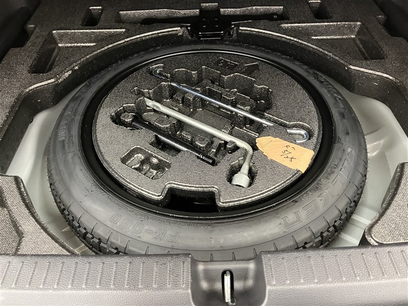 【スペアタイヤ】パンク修理キット搭載車が増えていますが、スペアタイヤがあればパンク修理ができない状態でも付替えて走行可能です♪