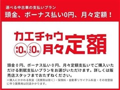 頭金0円、ボーナス0円、月々定額払いでご購入いただける割賦支払いプランを選択できます。*購入にかかわる税金(消費税は除く)・保険料・自動車リサイクル料金・その他登録に伴う諸費用は別途かかります。