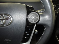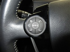 ステアリングは手になじむ本革巻き。ステアリングスイッチでオーディオの調節・マルチインフォディスプレイの切り替えができます