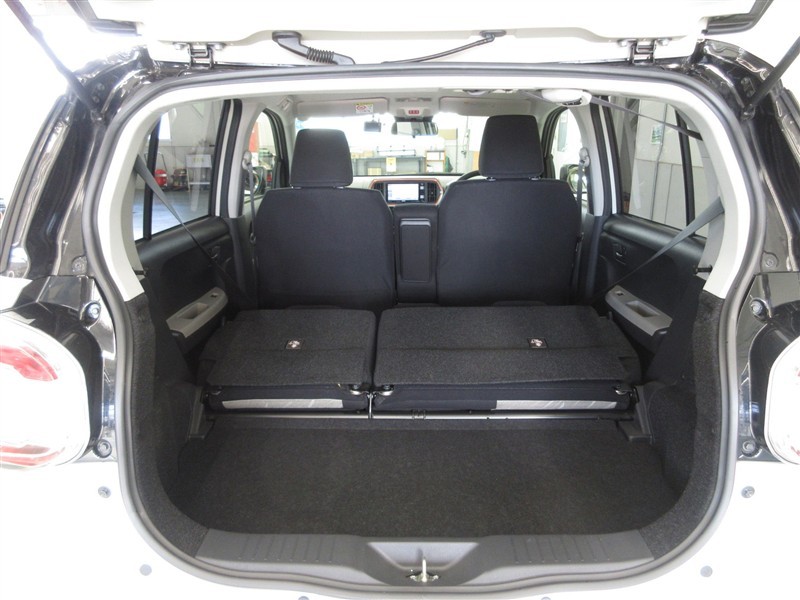 リヤシートバックを倒せば広いラッゲジスペース、タイヤも4本積載できます。