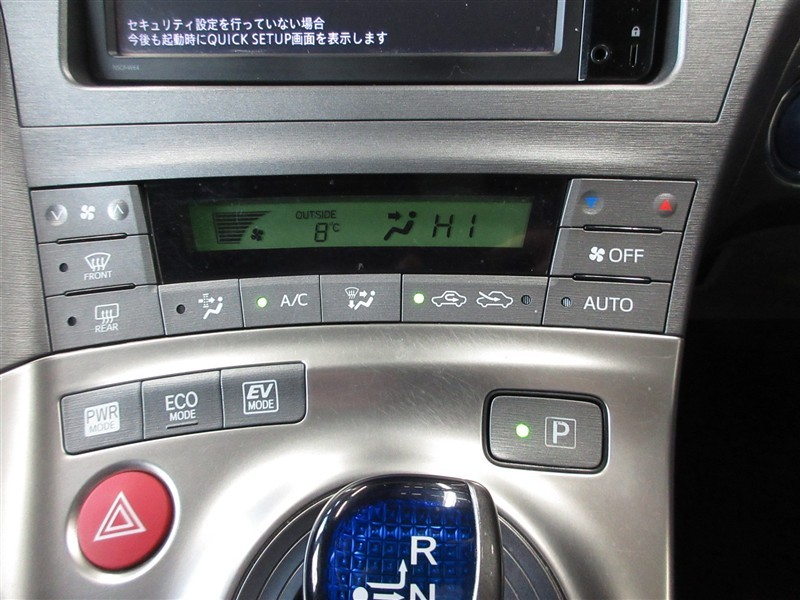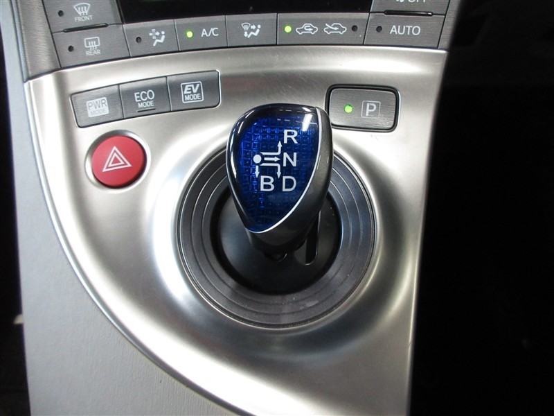 プリウスの特徴でもあるエレクトロシフトマチック搭載。操作軽快で、エンジンOFFで自動的にPレンジに入ります。